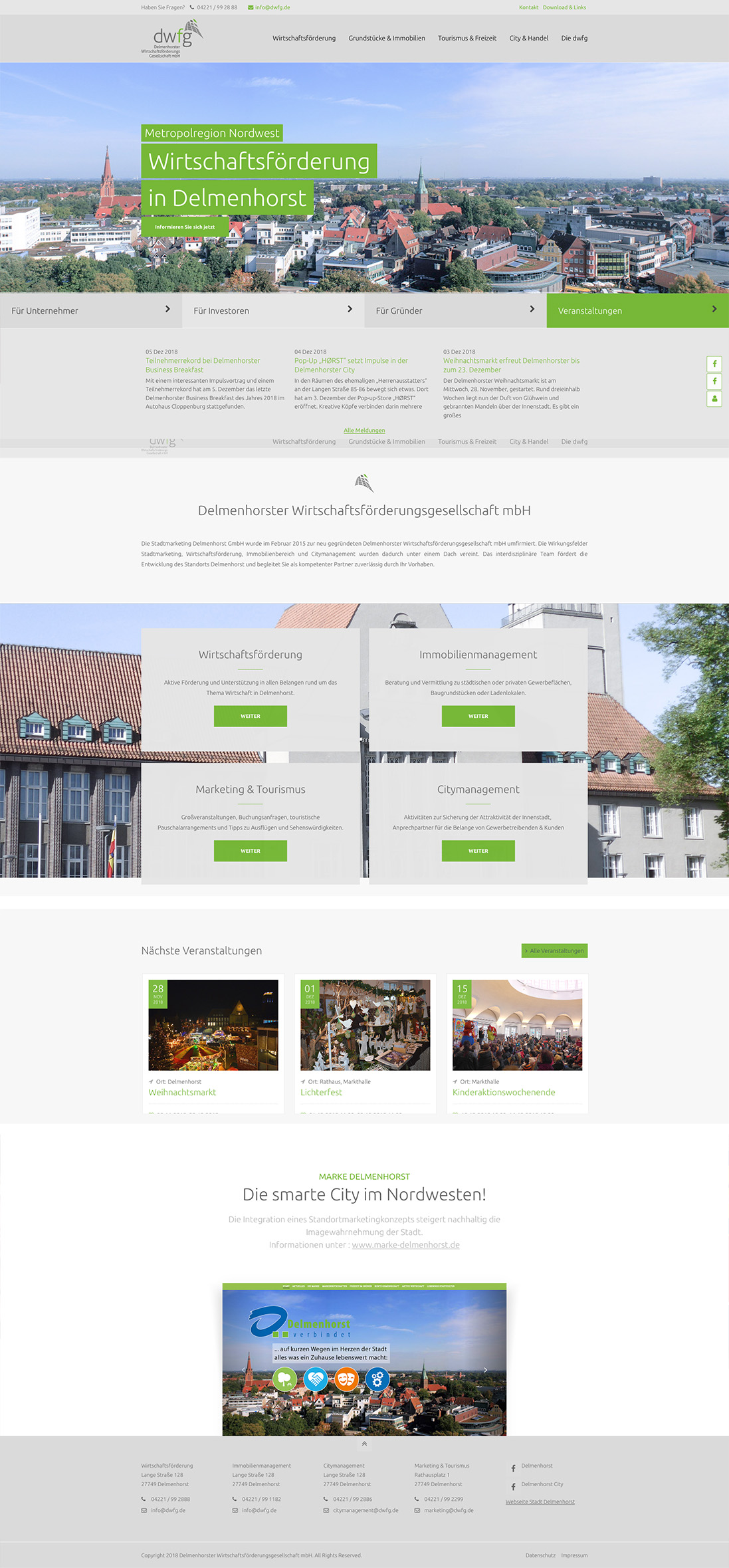 Die dwfg fördert die Entwicklung des Standorts Delmenhorst. Dies umfasst die Wirkungsfelder Stadtmarketing, Wirtschaftsförderung, Immobilienbereich und Citymanagement.