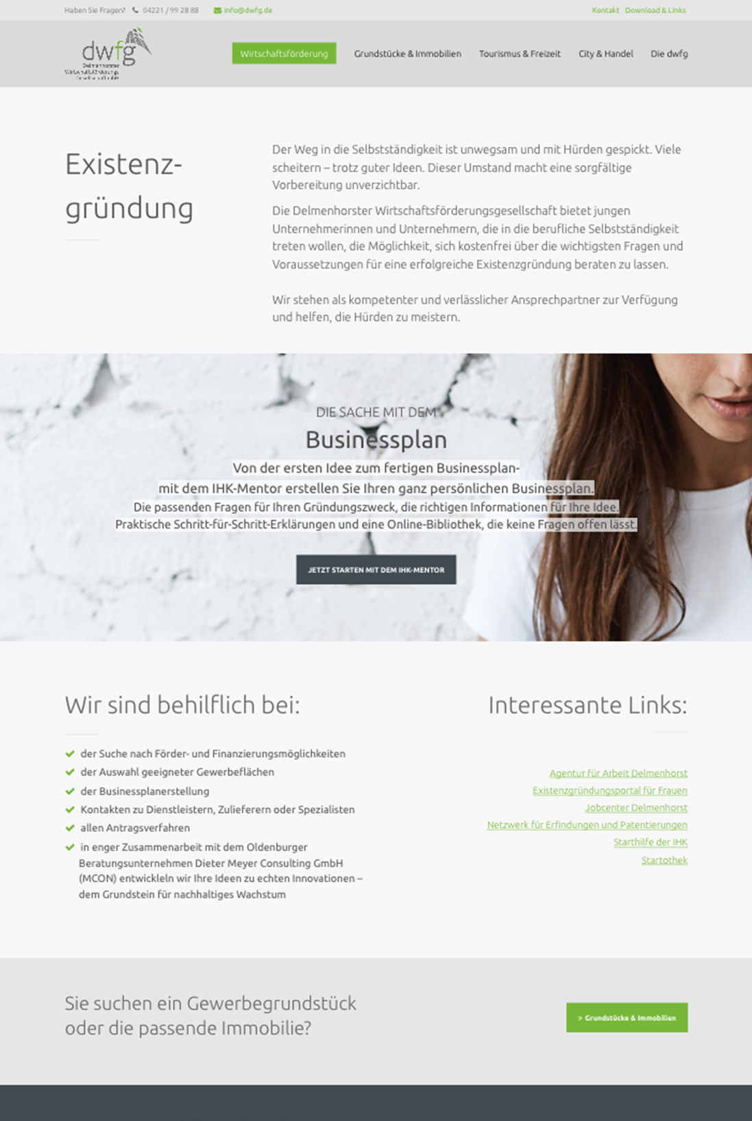 Relaunch der Webseite der dwfg GmbH - modernes, klares Design welches sowohl Geschäftsleute & Investoren als auch Bürger/innen anspricht.